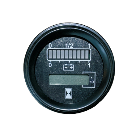 該產品為電量和小時計組合化儀表:它主要由一塊液晶小時計儀表及十個電量狀態(tài)指示LED組成。液晶小時計儀表主要積累顯示車輛工作小時,十個狀態(tài)LED指示當前蓄電池的剩余電量。該組合儀表采用微控制器為核心的高精度數(shù)字化處理方式, 在電路設計上選用進口高靈敏度、高可靠性、低功耗元件。儀表精度高、穩(wěn)定度強、發(fā)熱小、能耗低、抗振動強,為車輛安全運行提供可靠的提示。